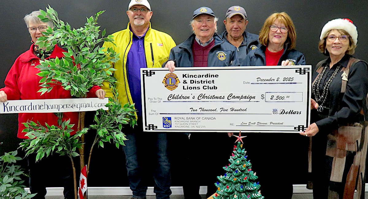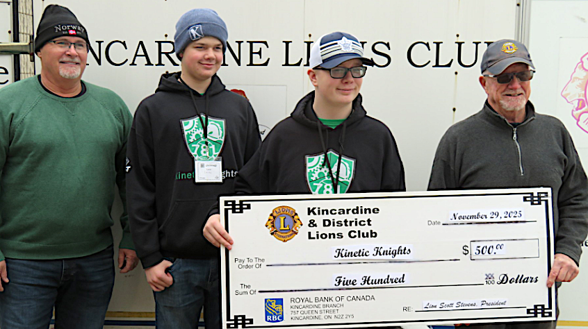to local organizations including the Kinetic Knights, Kincardine Community Services for their Children’s Christmas Campaign and Huron Shores Hospice.